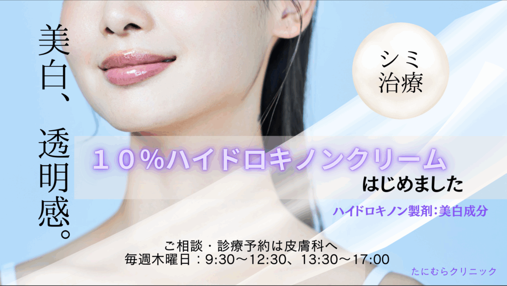 たにむらクリニック皮膚科では、10%ハイドロキノンクリームの取り扱いを開始しました。